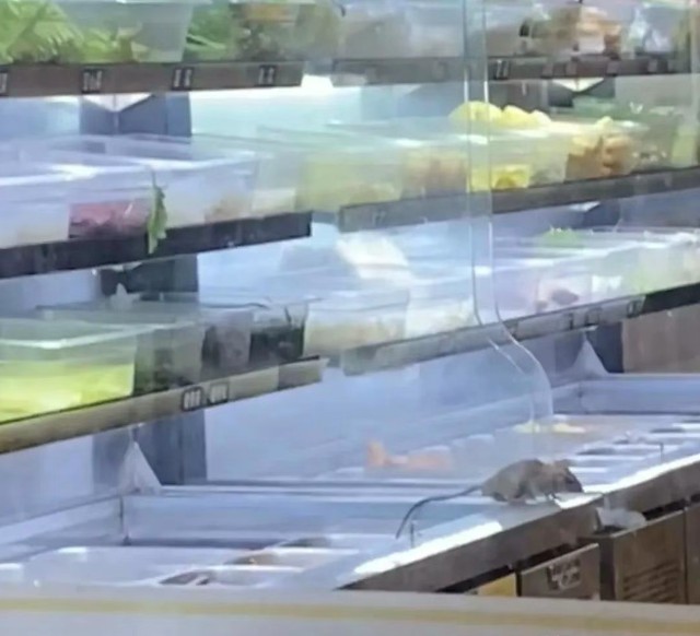 先是一个月前广西省东兴市“北仑大道店”,正当一位已经付过款准备将做好的麻辣烫带回去饱餐一顿时,菜品区爬着一条“尖嘴猴腮”、“细长尾巴”的大老鼠。