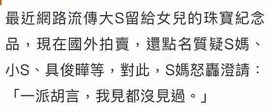 第一、澄清没有卖大S的珠宝,并强调见都没见过