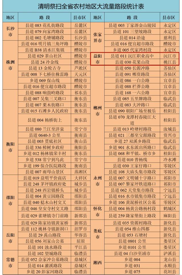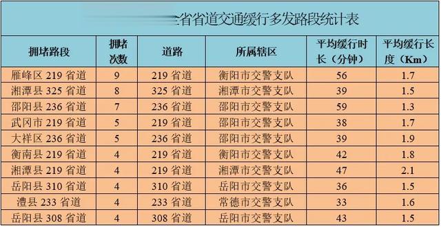 2.预测假期邵阳、衡阳、常德、湘潭、岳阳等地的部分省道因车流量大,局部易发生交通缓行。