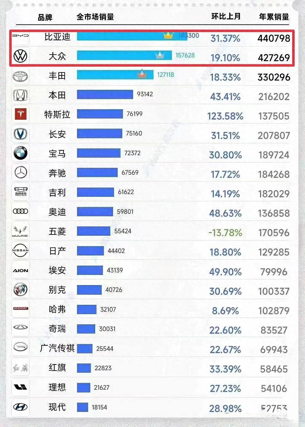 随着汽车品牌格局的变化,中国现在已经成为了全球新能源汽车的产业中心、研发中心、制造中心和创新中心,所以在这个时候,比亚迪董事长王传福也没有懈怠,而是继续带领团队在新能源汽车行业中不断向前,依然坚持研发投入高于利润,今年有3.18万名应届生入职比亚迪,其中超半数以上都是研发岗位,所以比亚迪销量胜利的背后也是“技术为王,创新为本”的胜利,现在2023年已过大半,所以希望在2024年,比亚迪能够再接再厉,挺近全球汽车销量前5。