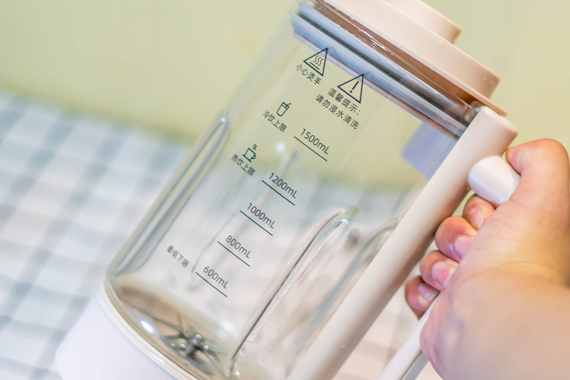 ▲▲大容量的杯体采用杯体与电机分离的轻量化设计,拿取方便。大容量的设计支持最高1200ML的热饮和1500ML的冷饮,非常适合全家饮用。