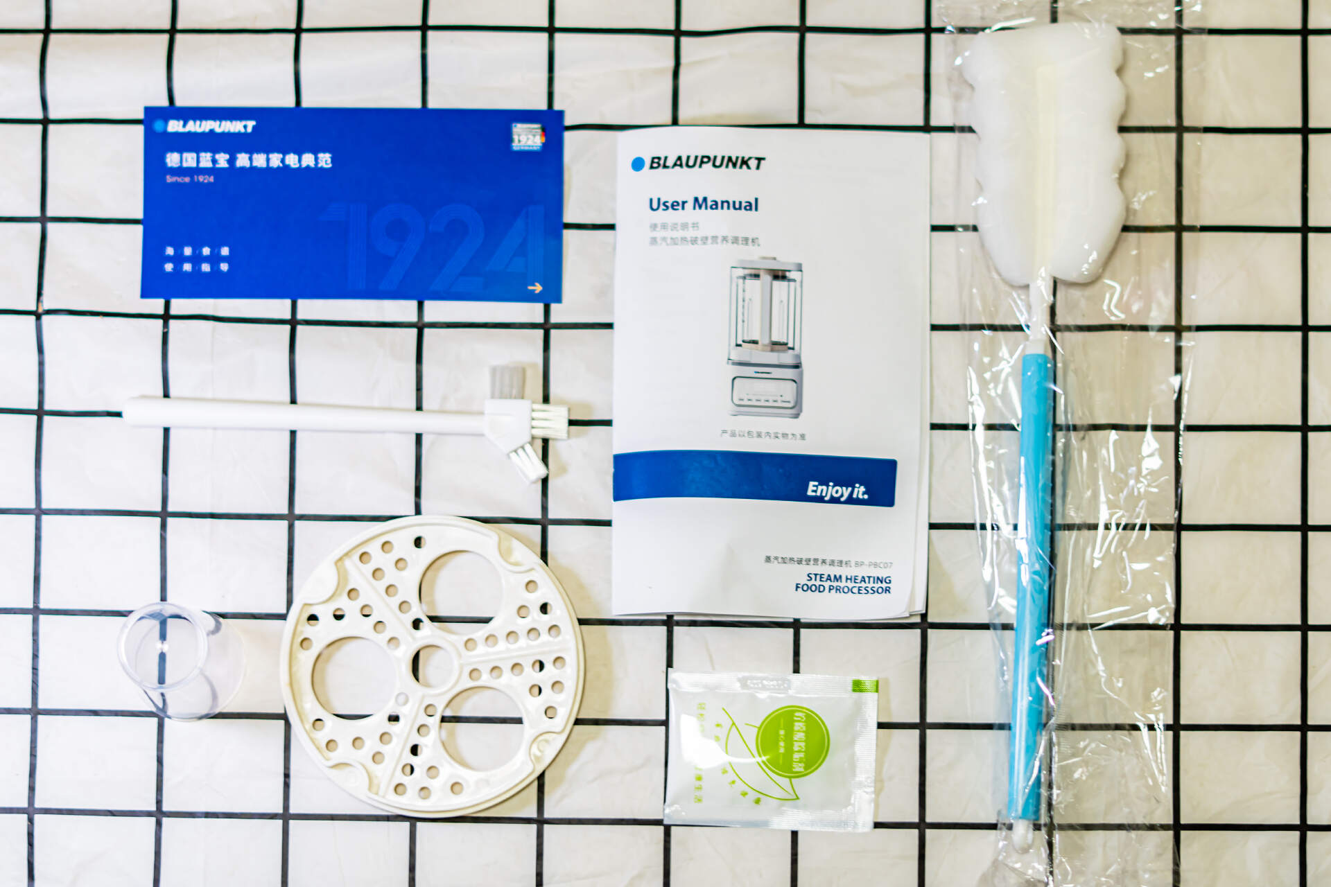 ▲▲除了机体以外,配件还有说明书、蒸蛋架、量杯、除垢剂和杯刷等。