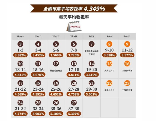 以《六姊妹》为例,该剧不仅线上热度表现优异,其收视率表现也让人惊艳。该剧首轮播出平均收视率4.349%,位居中国视听大数据(CVB)有收视记录以来电视剧收视率第一,其中大结局收视率高达5.398%,成为近年来电视剧“单集收视冠军”。