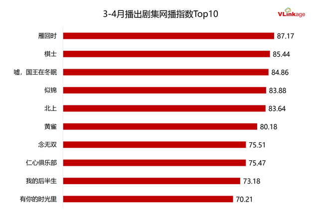 该剧热度峰值高达87.17,是今年3-4月开播剧集里网播指数最高的作品。与作品相关的剧情走向,人物命运、情感表达等,成为今年Q1各社交平台的热门话题,同时也拉动该剧主创团队人气高涨。这部作品所获得的优异市场反馈,再次证明了女频作品强大的受众号召力。