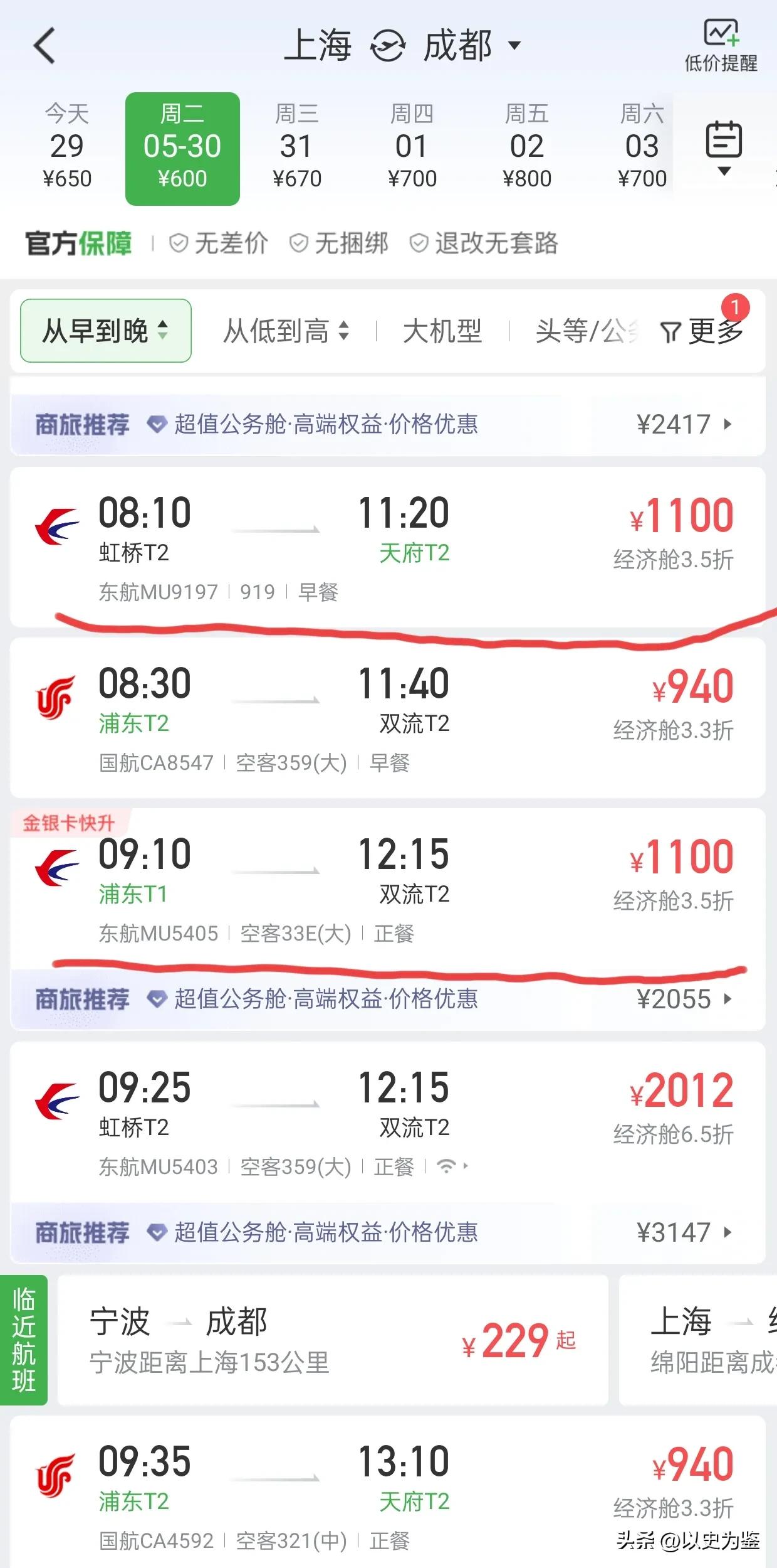 MU9197和9198的经济舱均价是919块吧,1100是临近日期涨了一点的