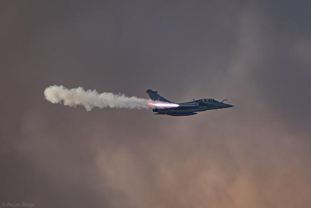 随后,一架阵风DH在看台前机动,并向一个可消耗的无人机目标发射了一枚MBDA MICA红外热追踪导弹,行动短暂地从地面攻击转移。随后,印度斯坦航空公司的一架光辉战机向模拟的敌方指挥中心投掷了一枚1000磅重的激光制导炸弹,一架苏- 30MKI向同一目标投掷了5枚1000磅重的非制导炸弹。