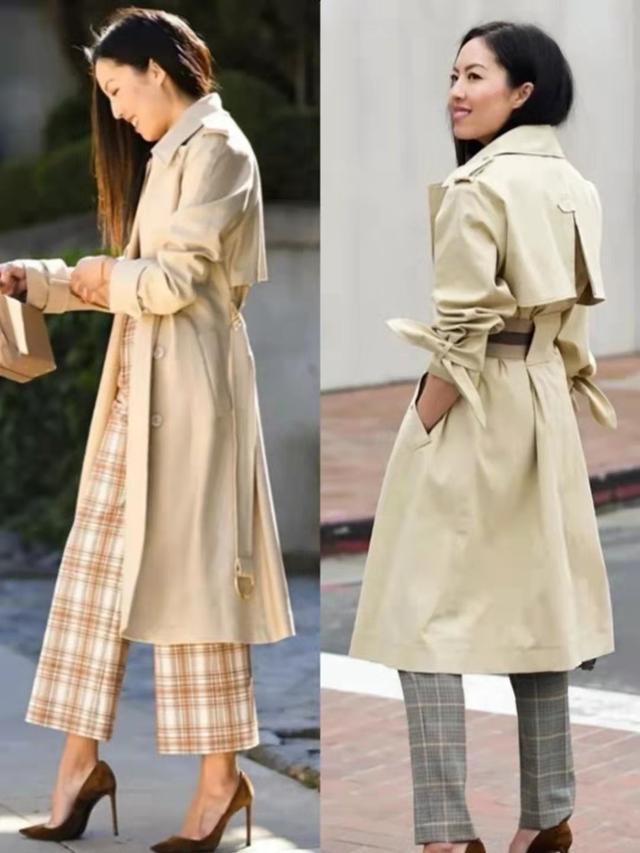 【二】在搭配风衣的时候,可以运用这些配色公式更洋气好看配色方针<1>纯色风衣搭配“格纹元素”,文艺感十足