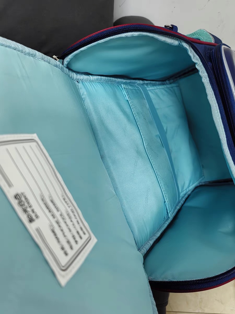宾比系列的书包背部是3D加厚背垫,还是中空导气的设计,小孩背上书包时,背部接触的是外侧凸面,中间脊柱部分是空出来的,基本没有受力,书包对脊柱的压迫感就会轻很多。背板还采用了S型立体弧度设计,能够很好配合小孩脊柱的形态,我娃和侄女一背上这款书包,我就发现他们一直驮着的后背就默默直了起来,腰也一点儿没弯,体态真的好了很多。而且这款书包的背板还是高密度的面料,透气性很强,背着不会有闷背感,我娃自己也特别满意,外甥女也很喜欢。