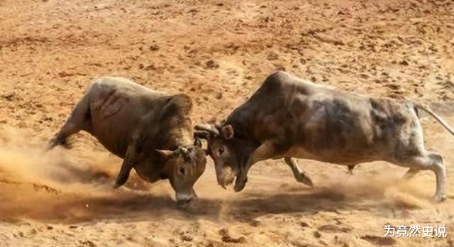 曹植听到声音后扭头看去,瞧见有两头牛正用角相互顶撞,打得不可开交。很明显,其中一头牛落了下风,正一步步往后退,眼瞅着就要掉进后方的井里了。