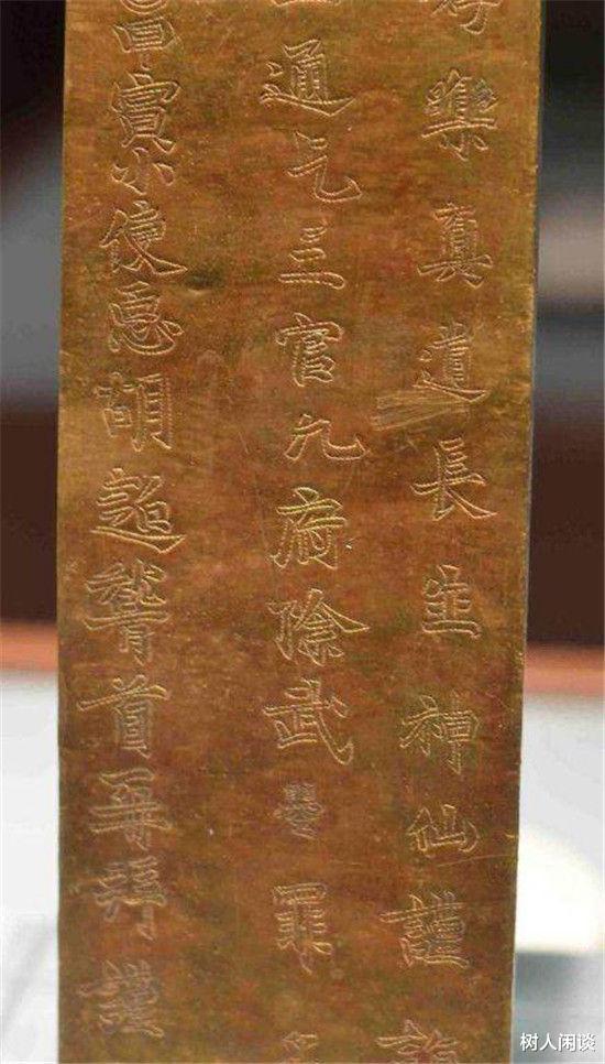 1982年5月的一天,河南登封县一个叫屈西怀的农民像往常一样,趁着农闲到附近的嵩山采草药。当他攀爬到峻极峰时,在一处险要的石头缝隙中看到有金光在闪烁。屈西怀很好奇,于是就不顾危险攀爬过去,从中取出了一块由纯金打造的金简。