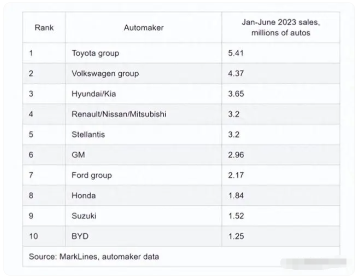 2023年上半年累计销量突破125万辆,在全球新车销量排行榜中首次跻身前十。
