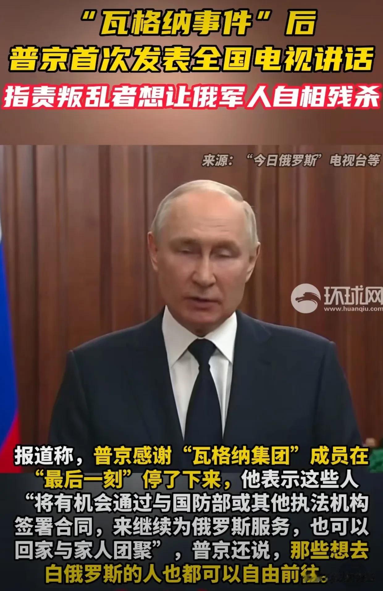 普京在电视讲话中给“瓦格纳集团”成员三条路: 1、加入俄军。(将有机会通过与国防部或其他执法机构签署合同,来继续为俄罗斯服务) 2、解甲归田。(可以回家与家人团聚) 3、去白俄罗斯。(可以自由前往白俄罗斯) 这三条路里都不是啥好选择,非要选恐怕第3算是比较好的选择。 选加入俄军,这个时候大概率会被当成异己,甚至充作炮灰; 而解甲归田也不保险,后续扩充征兵啥的也肯定优先选这批人; 去白俄罗斯,虽然背井离乡,还算同文同种,大的文化习俗还是接受的。而且老卢卡在的时候也还能罩着点,不过以后嘛,也不好说了,毕竟在白俄也是低人一等的雇佣兵[狗头][狗头][狗头]