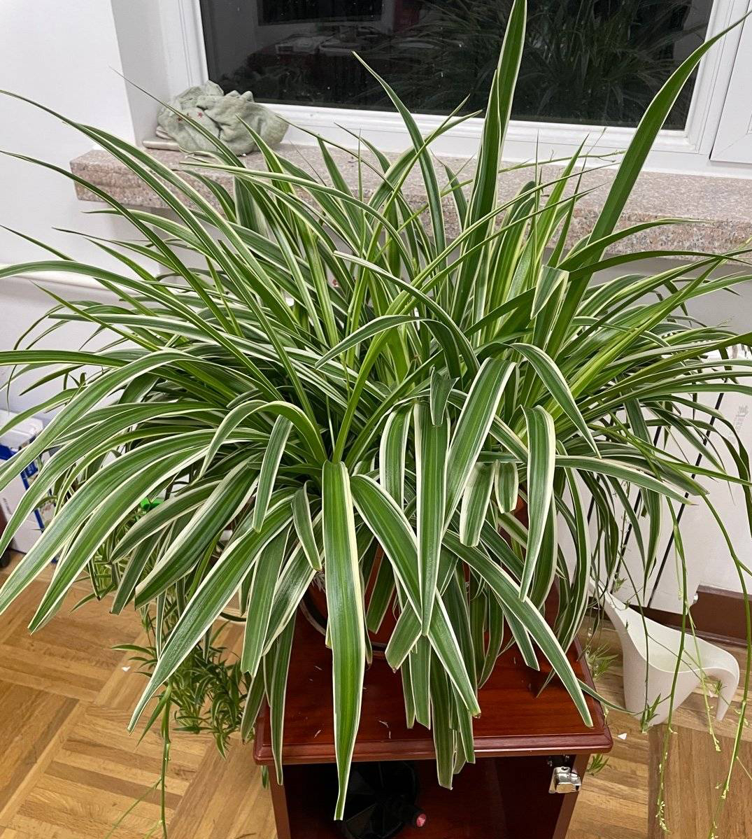 每年春秋的时候,给金边吊兰翻一次盆,把老土换掉一部分,换上新的肥沃土壤,它就会迅速长势喜人。