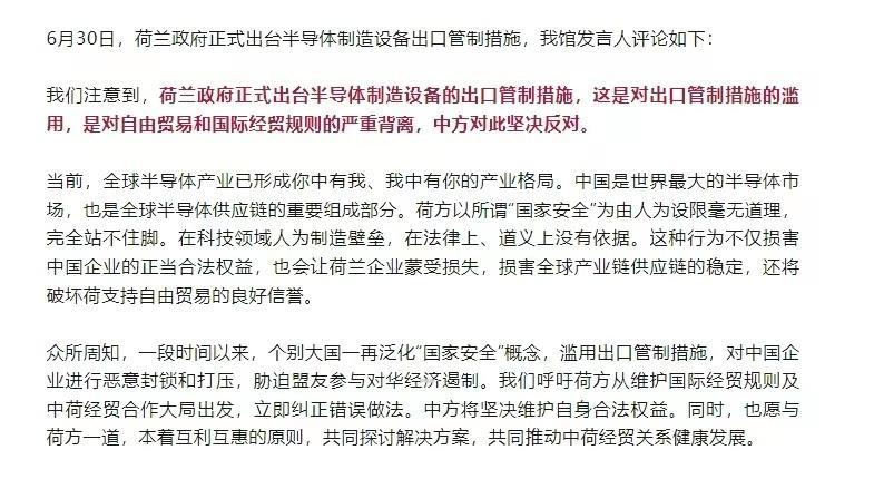 从各方面消息看,荷兰这是等于彻底站队美国了,从各种层面看都是针对我们,我们刚刚曝出28nm解决问题,荷兰就来了这么一出,看来我们必须要加速把更加高端光刻机搞出来,彻底把ASML搞死,不把它们搞崩溃,他们永远都会折腾,这个世界不需要一家独大,所以ASML必须变成非必选项。