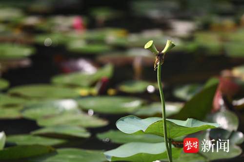 6月16日,南京玄武湖再现并蒂莲后,很快成为玄武湖里的“明星”,吸引众多赏花者和摄影爱好者围观。历时17天,记者也用相机全程见证了其从含苞待放、惊艳绽放到并蒂花落的过程。据介绍,南京玄武湖今年首次发现的这株并蒂莲,其出现概率为十万分之一,实属罕见。并蒂莲是指一根茎上长出两朵花,花各有蒂,蒂在花茎上连在一起,也称并头莲、同心芙蓉、合欢莲、瑞莲,是荷花中的珍品。
