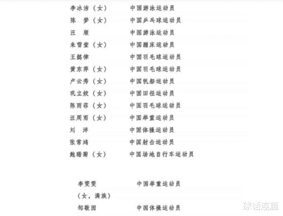 除了杨倩之外,射击队还有杨皓然等人入围,此外举重名将侯志慧、李发彬、谌利军、中国赛艇名将张灵、吕扬,国乒队的陈梦以及游泳队的名将汪顺等优秀选手也赫然在列。当然在奥运会中爆红的全红婵选手也在名单中,还有小将陈芋汐和张家齐也获得了奖章,三位都是我国跳水队的未来新生代力量,不得不说我们跳水梦之队真的是太内卷了呢,竞争相当激烈尤其是女子十米台,全红婵陈芋汐张家齐三位小将同台争艳让人看得眼花缭乱的,未来的赛事周期也基本上是她们的天下,期待三位小花的优异表现!