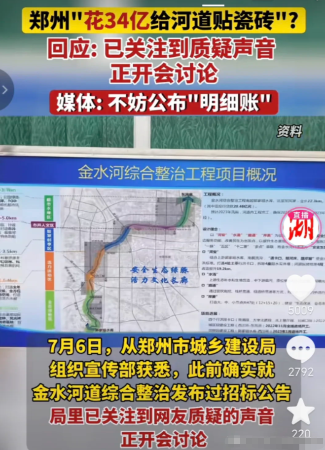 河道贴瓷砖,钱真没地方花了吗,34亿有得贪的了
