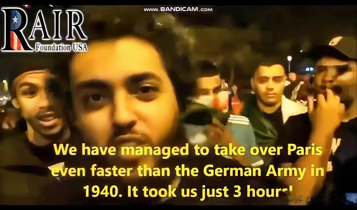 一个大胡子青年在巴黎开心地乳法:“我们占领巴黎的速度比1940年的德军还要快,仅仅花了3个小时!” 根据流传的视频显示,这个大胡子青年在凯旋门前对着摄像头说: 拍这里,拍这里。我们这里有阿尔及利亚人、土耳其人、摩洛哥人、塞内加尔人…… 他还对着镜头大喊法国极右翼政客勒庞的名字,玛丽娜·勒庞(Marine Le Pen),并且直接乳法道: “我们占领巴黎的速度比1940年的德军还要快,仅仅花了3个小时!” 第二次世界大战时,德国从1940年5月10日开始进攻法国及比利时、荷兰等低地国家。到了1940年6月14日,仅仅一个多月德军已经占领巴黎,抵抗时间还比不过苏联斯大林格勒的一栋巴浦洛夫大楼(23名苏军战士守卫58天之久)。 也因为二战时期法国的无能,“在法国投降之前占领巴黎”就成了互联网上一个著名的乳法的梗。 但我是没想到,这些法国“新青年”竟然堂而皇之地在巴黎疯狂乳法,还叫嚣法国极右翼政党领袖勒庞……真是不嫌事大![狗头][狗头][狗头]