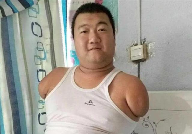 后来父母才得知他是得了先天性海豹肢症,天生就缺手缺脚。