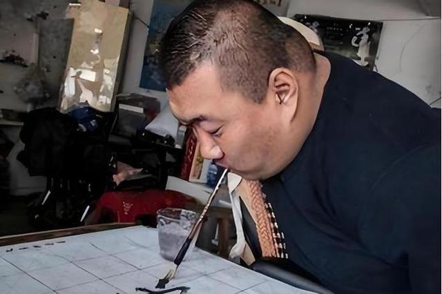 在母亲的悉心教导下,袁立东学会了用嘴咬着笔写字。