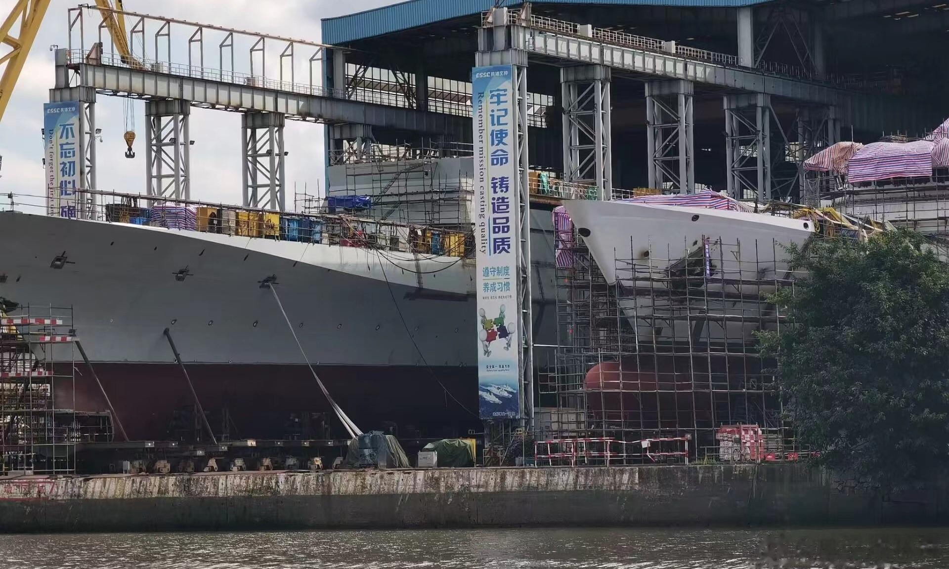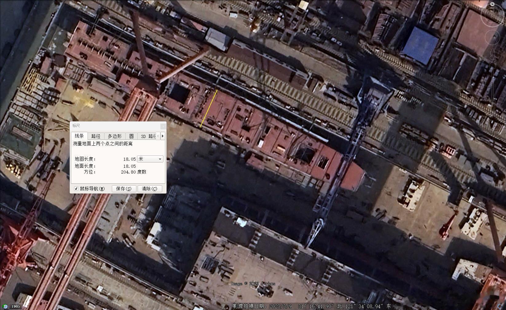 近日“谷歌地球”更新了黄埔厂的卫星图像,显示3月份时船坞中在建的054B护卫舰在少一块舰艏模块的情况下,舰长就达到了140米,而旁边的舰艏模块还有超过8米的长度,如此算下来054B的舰长应该有148米左右的,然后还有约18米的舰宽。