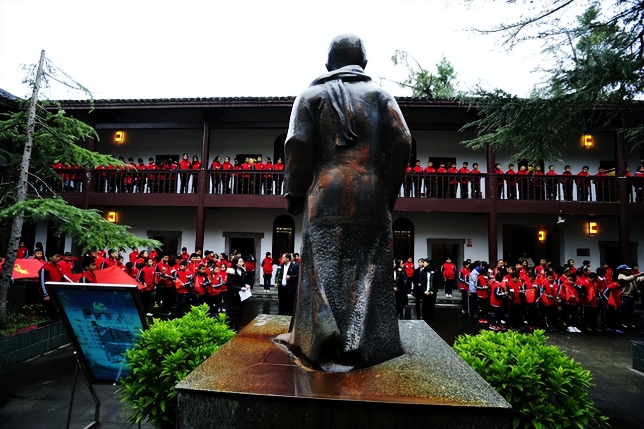 他驻足在江姐的雕像前,凝视着这位曾经激励他走向革命道路的英雄。