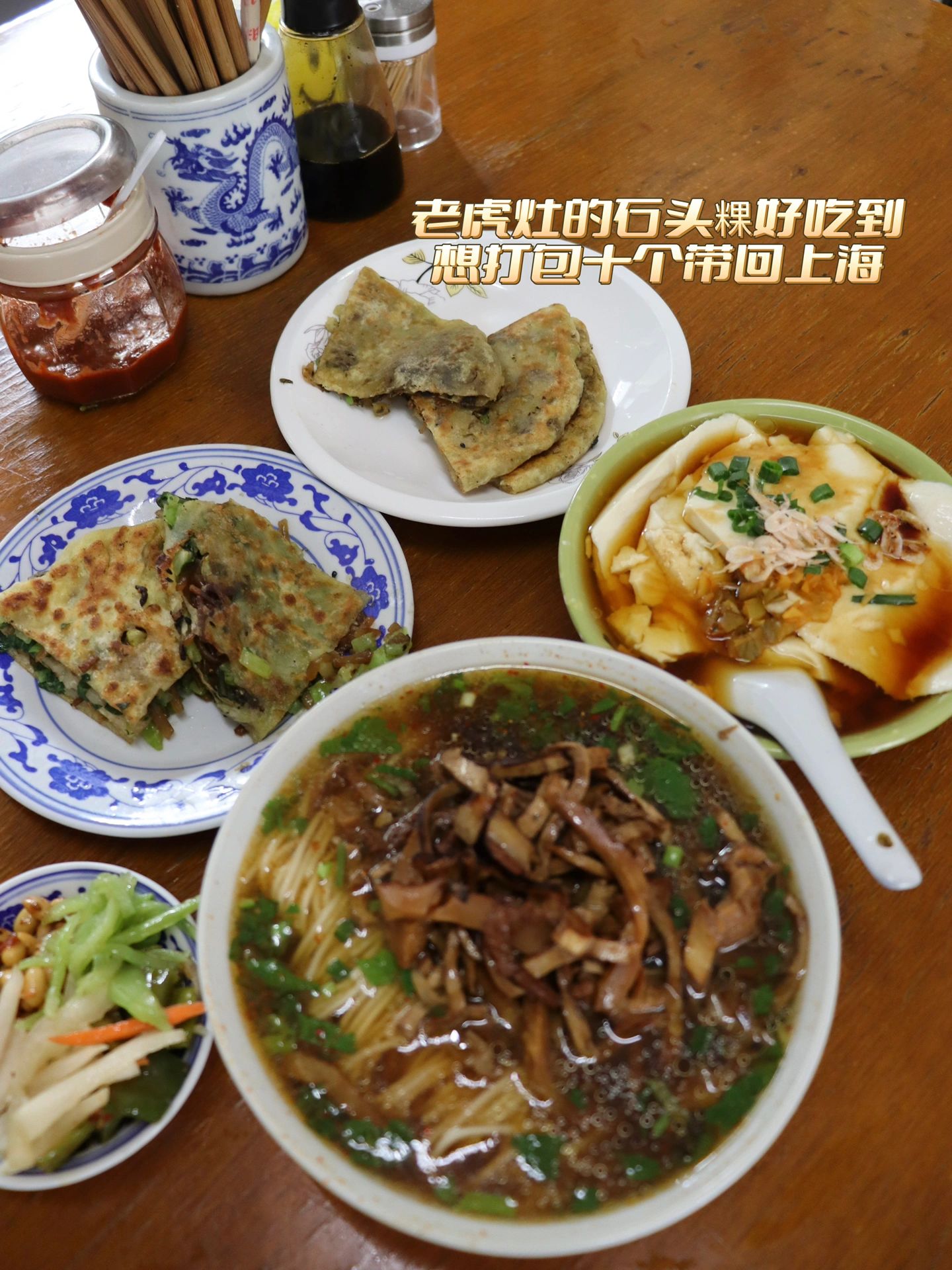 3️⃣老虎灶:惊艳到了!第一次吃石头粿!粿的馅可以自由搭配选两个,门口现包现压现烤!还搭配了豆腐脑和浇头面,早饭主打一个主食配主食