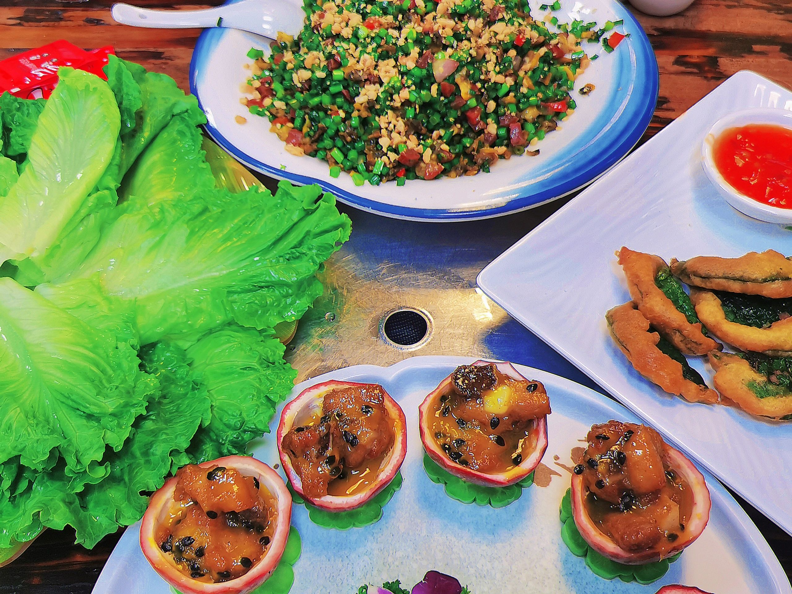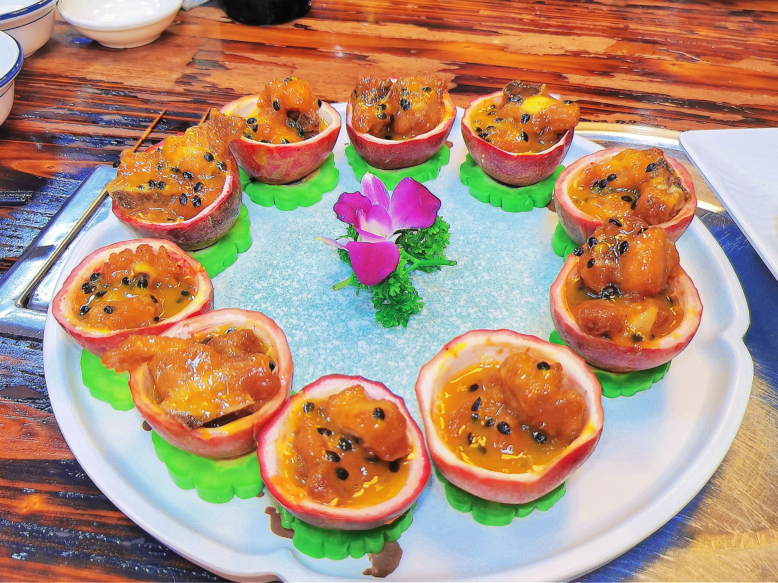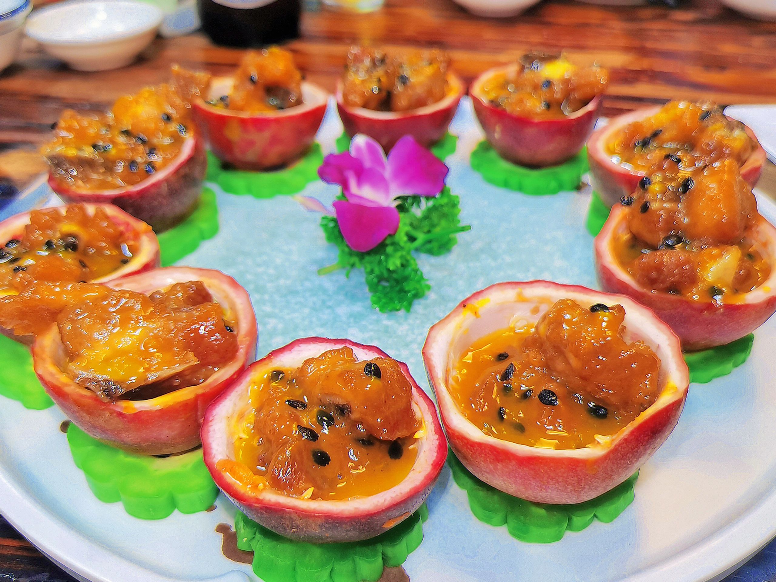 🍖百香果排骨:每桌必点,酸甜口味,扎扎实实的五个百香果,排骨吃完喝掉百香果肉,酸爽开胃!果香肉香融合的很好,不喜酸的记得让加糖。