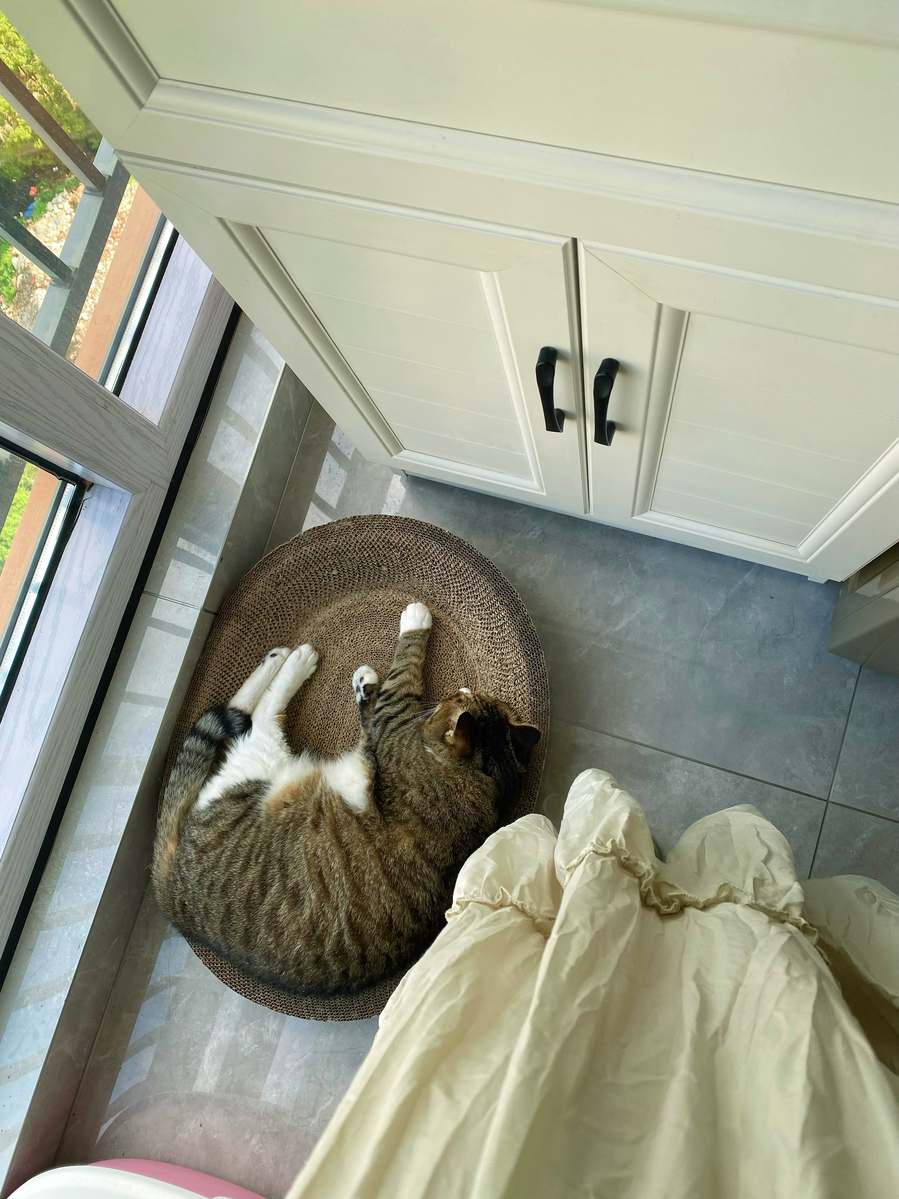 送别朋友,回家做大扫除,贝儿的屁股上全是猫毛,罪魁祸首还在呼呼大睡。