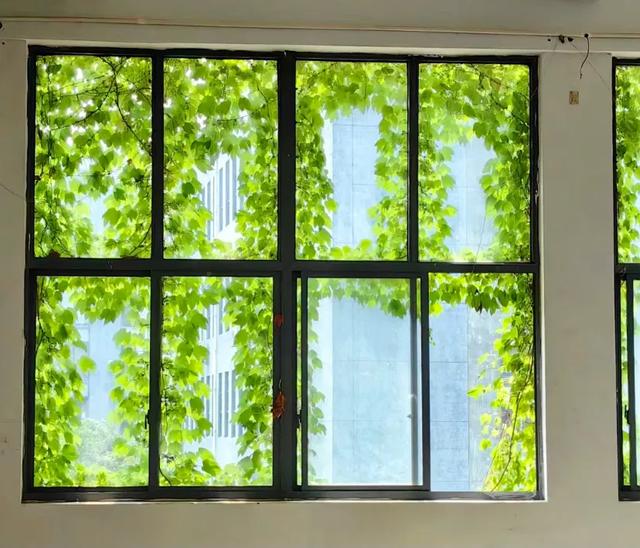 阳台对应的是爬山虎,阳台沐浴着丰沛阳光,是绿植的乐园。但过强的日光需以阴生绿意调和,如爬山虎,它以不屈之姿,编织绿意帘幕,遮挡烈日,为家添一抹清凉。