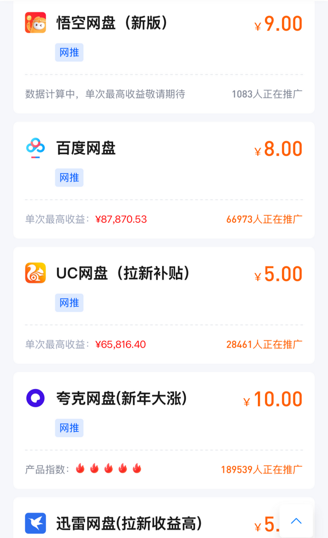 另外,这些几块钱的佣金,它既然能出现在推广平台,肯定也是网盘能接受的拉新成本。