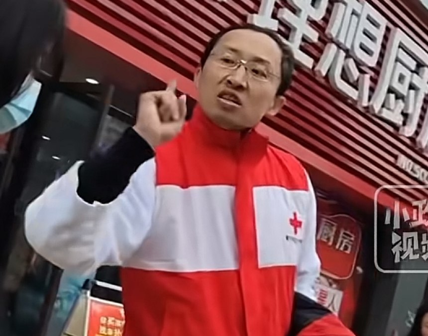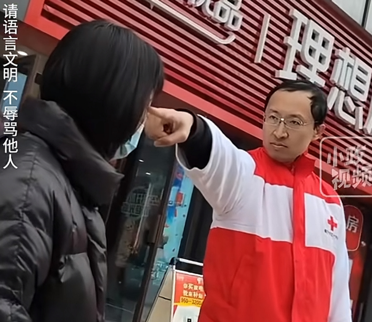 被指责的工作人员一直不停在说:“麻烦你不要用手指着我好不好?”