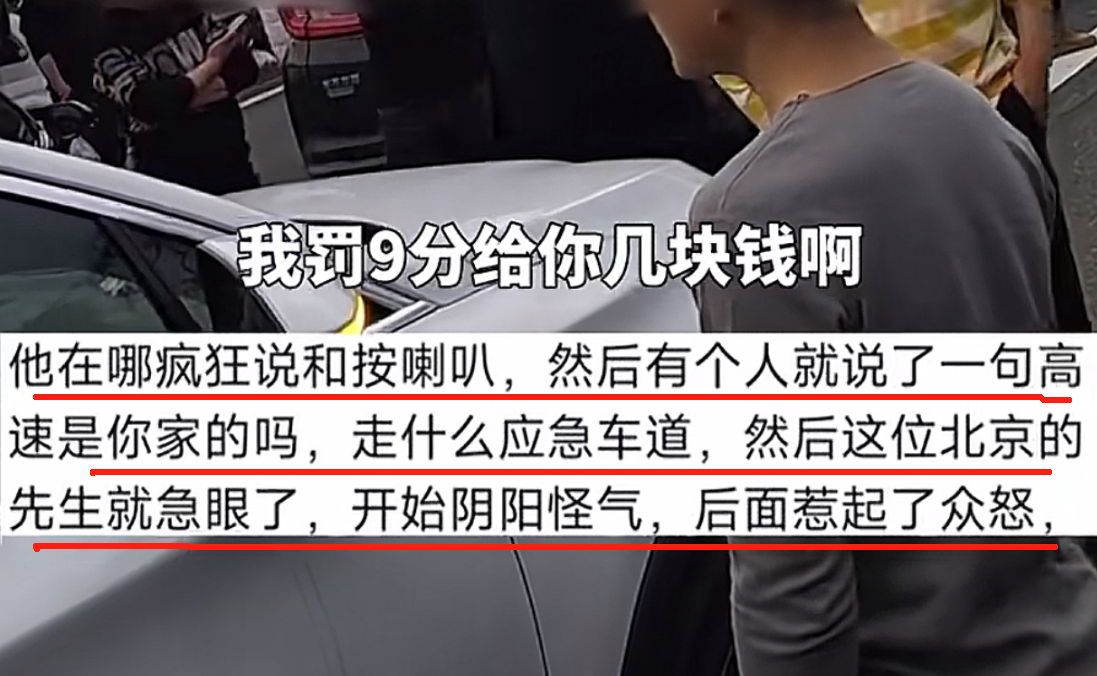 近日,一男子在高速公路上嚣张跋扈指责路人:“有些人活得像蝼蚁一样,我在高速上走应急车道,罚9分,给你几块钱?”