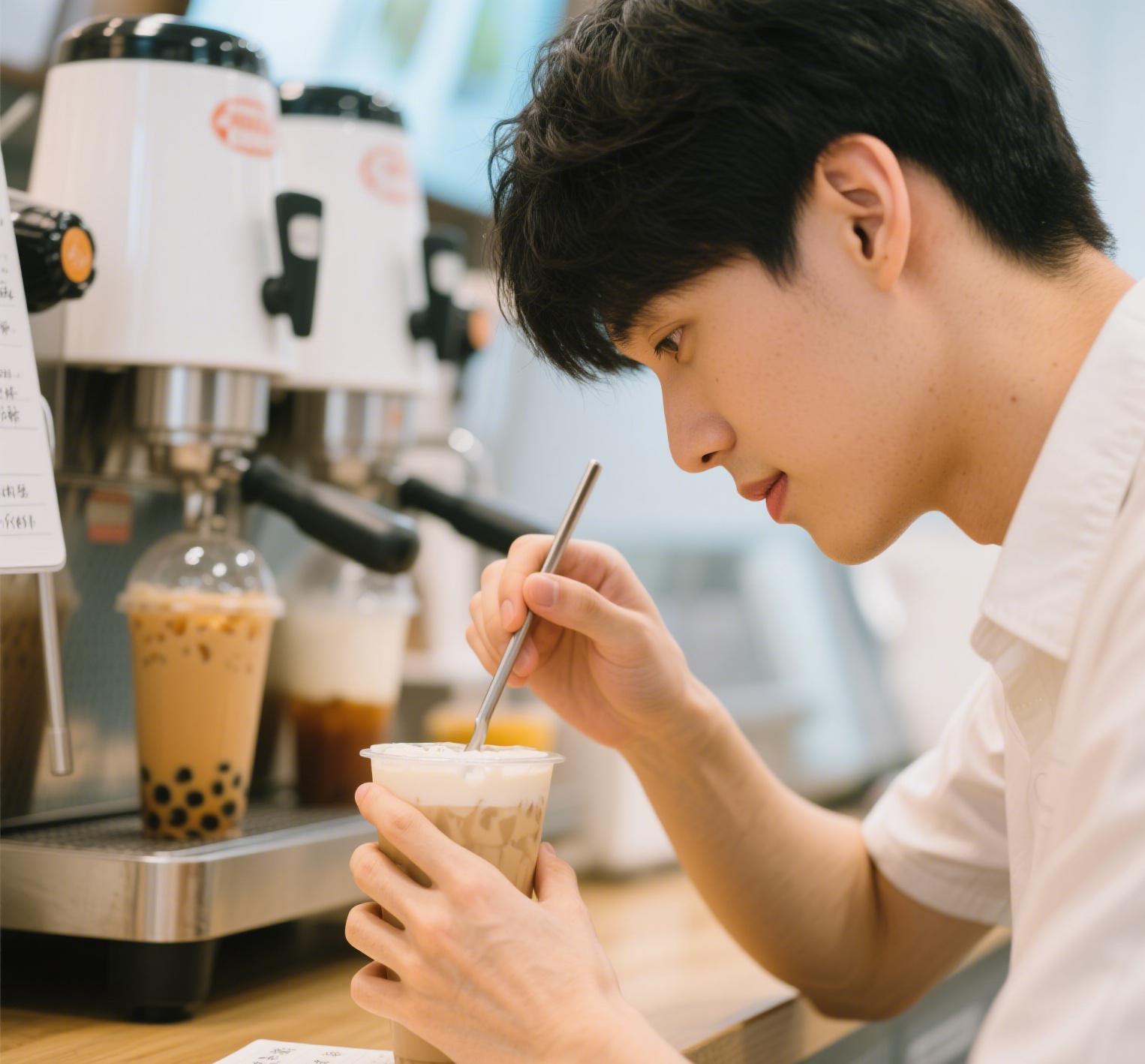 没办法,他硬着头皮学拼音,三个月后愣是把所有奶茶配方背得滚瓜烂熟。这拼劲儿让老板都看傻了眼,三年后,他从洗杯子的小工干到了区域督导,后来甚至管起了整个云南地区的运营。2017年,24岁的张俊杰和几个朋友凑了100多万,在昆明开了第一家霸王茶姬。那时候,满大街的奶茶店都在卖水果茶、芝士奶盖,他却一拍桌子:“咱就做原叶鲜奶茶,别的全砍了!”