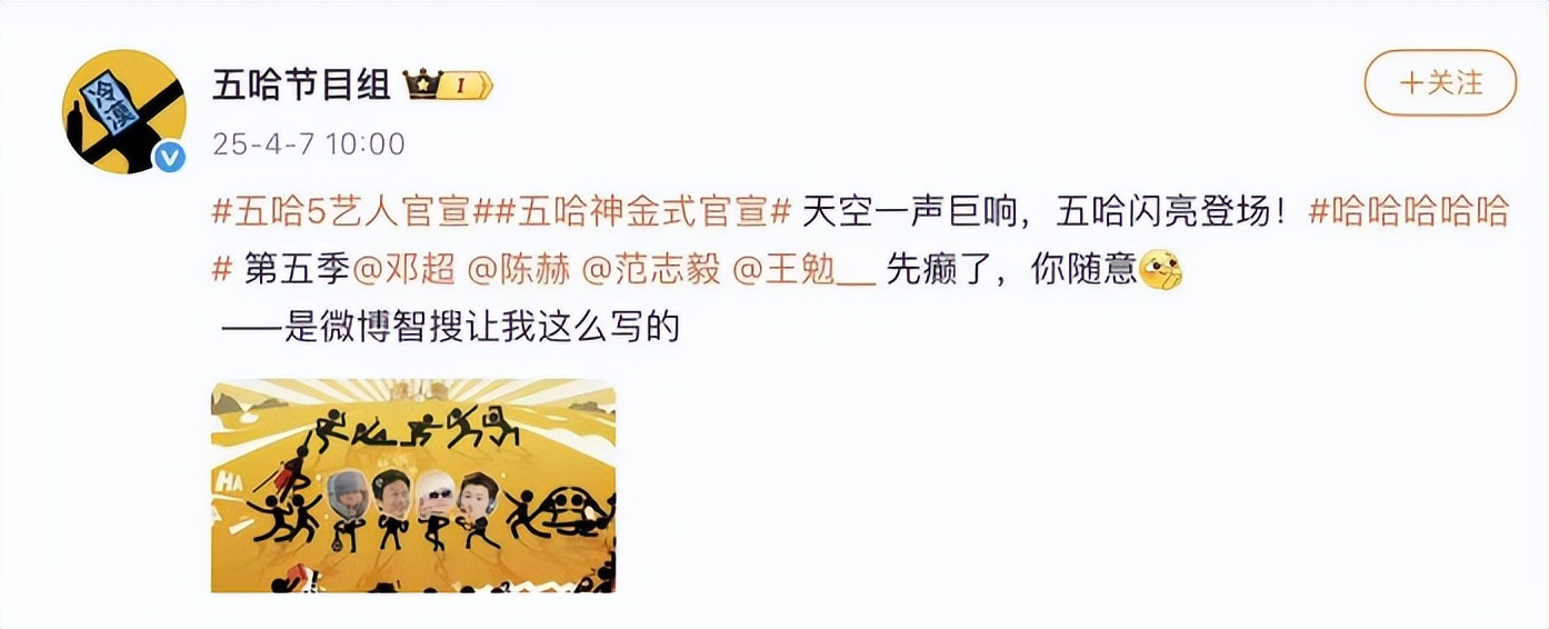后来他把更多的注意力都放在了综艺节目上,和鹿晗以及陈赫一起去到了《五哈》当中。