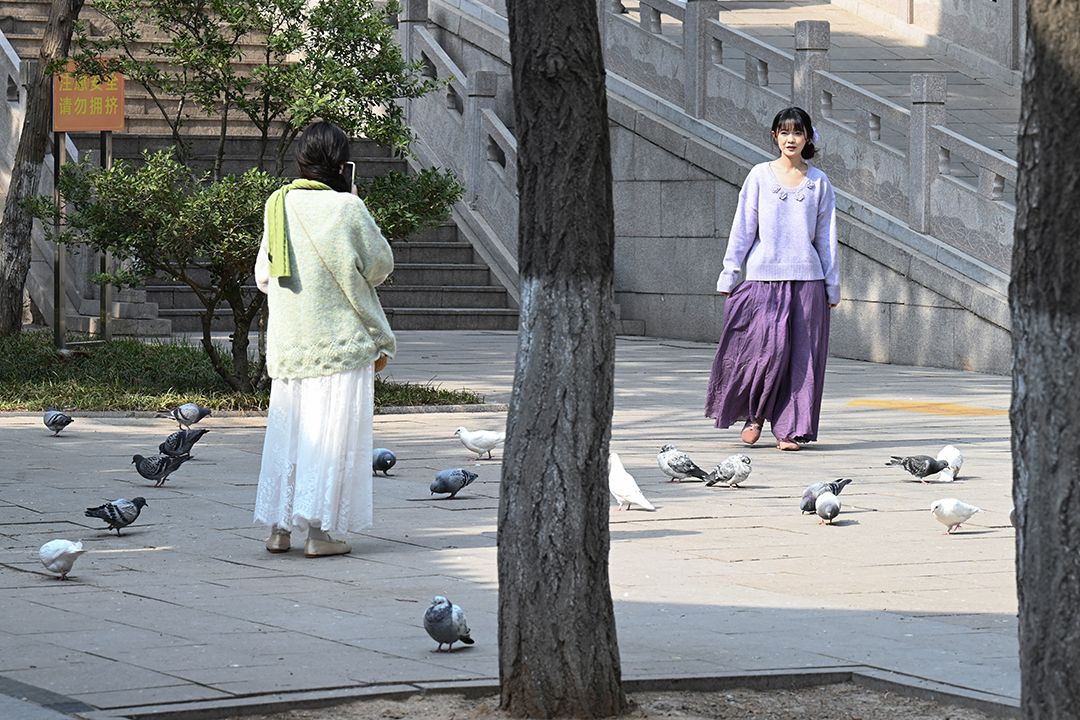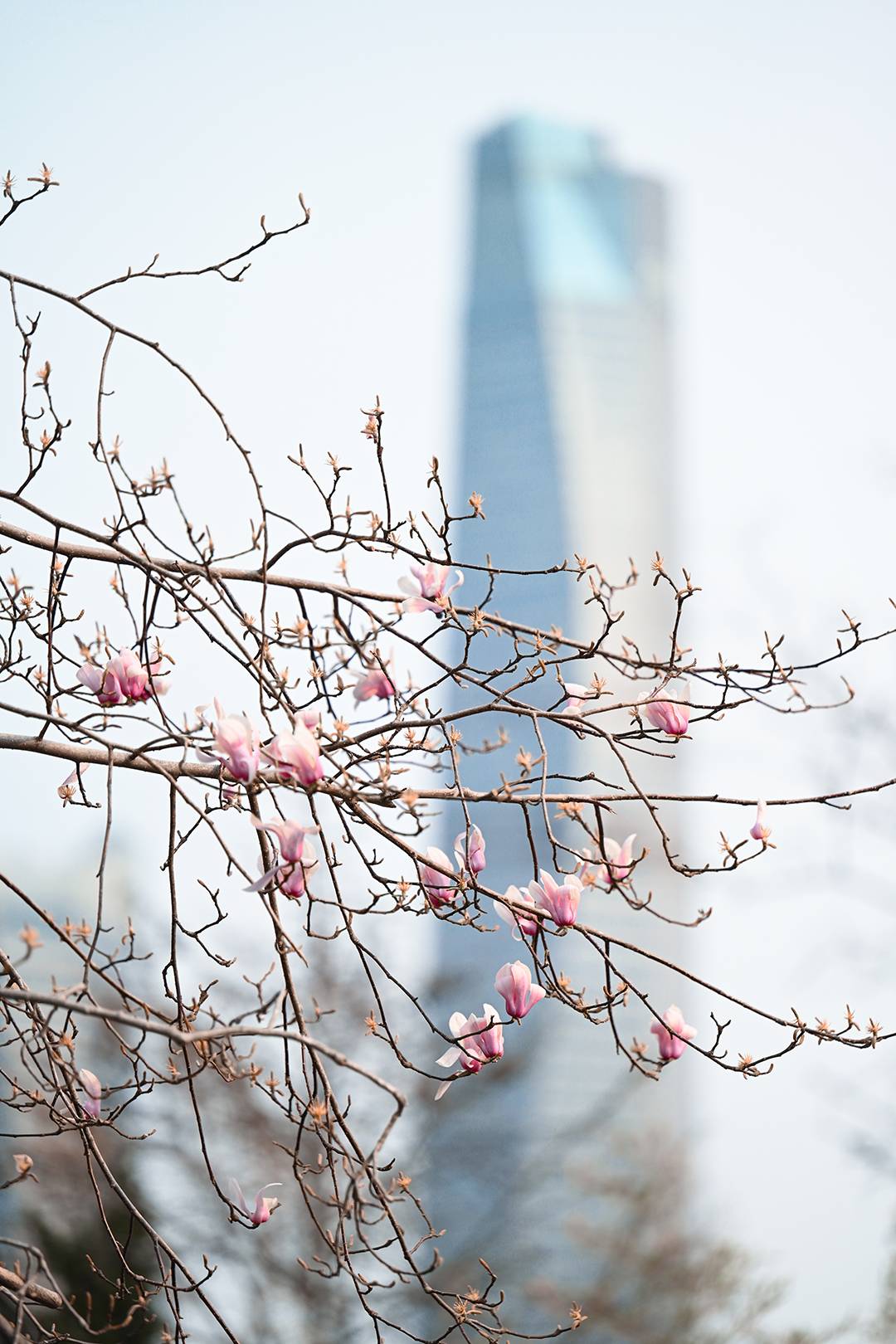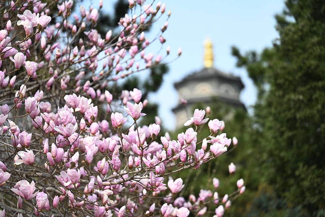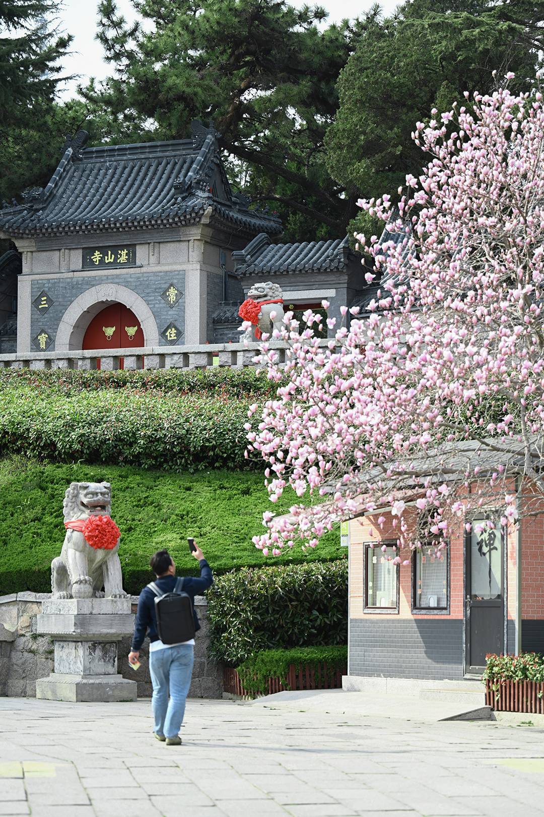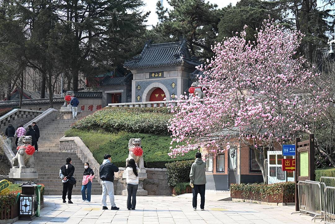 三月春暖。走进青岛湛山寺,花香与寺内的香火气息相互交融,给人一种深深的禅意。湛山寺的玉兰花恰似聆听梵音后苏醒的灵物,于静谧中优雅舒展,绽放出独属于春天的清幽之美。山门前的粉色玉兰静静伫立,花朵粉嫩娇艳,花瓣微微卷曲,令人不禁驻足,沉醉于这份美好。寺内的粉色玉兰含苞待放,与身后飞檐斗拱的建筑相互映衬,恰似禅意与春光的娓娓对话。在寺院建筑的衬托下,更显诗意,美得让人挪不开眼。走出寺院,沿太平山绿道漫步,湛山寺红墙宛如山间的红色飘带,将春意唤醒。山谷中山花烂漫,成片的紫玉兰色彩鲜艳夺目。走进青岛植物园,山茶的红艳与白玉兰的素色相映成趣,粉玉兰以摩天高楼做衬。这方春色赋予城市价值,一半繁华,一半宁静。(摄影:杨广科)