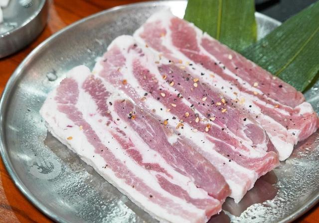 上五花的肥肉比例较高,瘦肉相对较少。一般来说,上五花只有 2 ~3 层肥瘦交替。这是因为其部位靠近排骨,脂肪在这个区域更容易堆积。