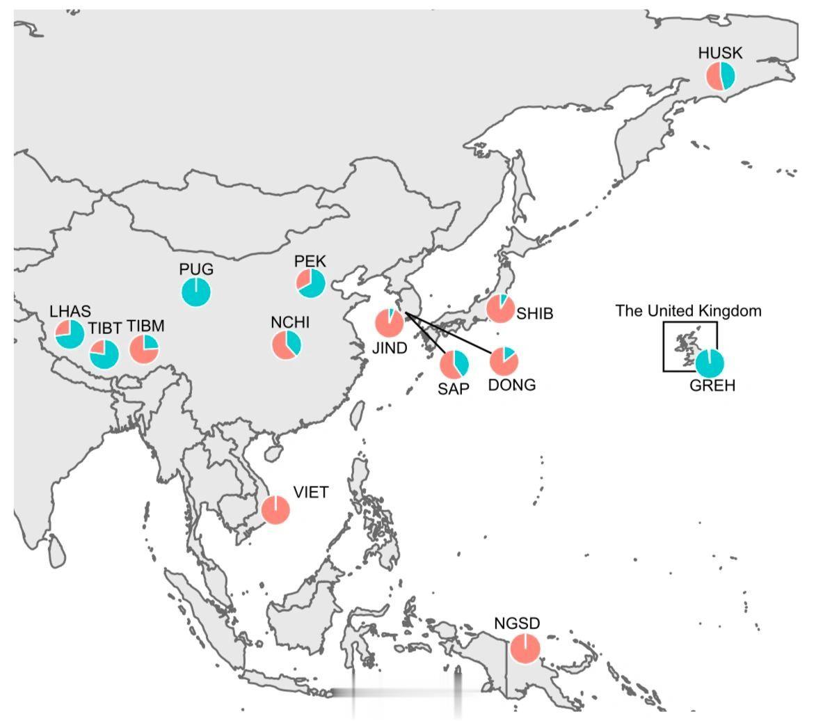原来日韩狗的祖先是中国土狗,分子生物学研究逐渐进入原始犬种领域,近日韩国一个研究本土犬的团队发表了一篇论文,内容是朝鲜半岛本土犬与周边国家犬基因的关系,如图。