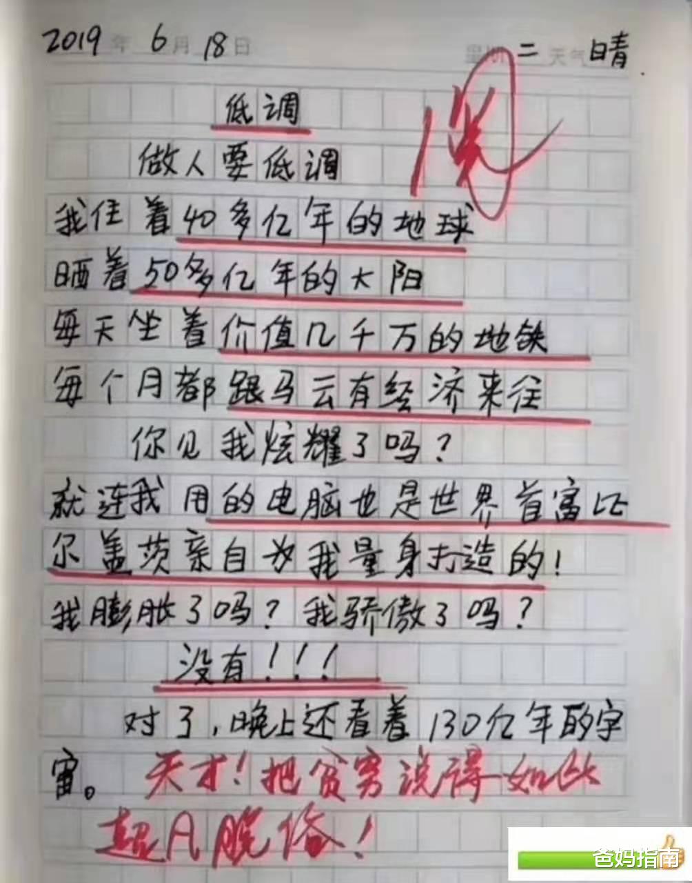 在网上看到一篇小学生作文,名为《低调》,特别火。