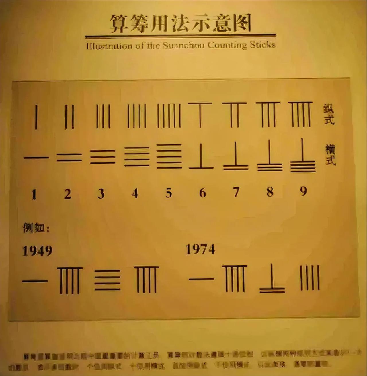 珠算的前身是算筹,那么什么是算筹呢? 算筹,又被称为“算子”,是一种用于计算和表示数字的细长形状的物体。它们通常是竹、木、骨、象牙等质地,也有用铜、铁等金属制成的。使用时,将它们按照一定的规则摆放在一个固定的位置,就可以表示出一个数字。 算筹表示数字的方式是,将横放的筹表示单位为“十”,竖放的筹表示单位为“一”,两者相叠就得到“五”。在每个筹的上端,可以添上一颗或者两颗筹,以表示数字的增加。例如,三就由三个竖筹表示,四则由两个竖筹和一个横筹表示。 在珠算中,算盘上的每一颗珠子都相当于一组算筹。上面一颗珠子相当于五组算筹,下面一颗珠子相当于一组算筹。这种设计与算筹系统完全一致。 除了用来表示数字,算筹也可以用于进行各种数学运算。在筹算时,人们需要熟记各种运算法则和口诀,通过移动和组合算筹来得到结果。这种方法虽然看起来复杂,但熟练后可以快速准确地得到结果,甚至超过使用电子计算器。 珠算在中国的普及和发展已有上千年历史,它在中国人的生活中扮演了重要角色。随着计算工具的不断进步和发展,珠算逐渐被电子计算器和计算机所取代,但在一些特殊场合,如珠算比赛,算盘仍被广泛使用。