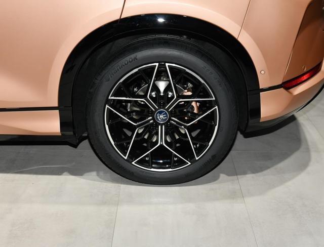 比亚迪宋L面向大5座SUV市场,从具体尺寸来看,长宽高在4840×1950×1560毫米,车身轴距在2930毫米。上方腰线比较高挑,放在隐藏式门把手上方,并且采用上扬式设计,而下方则是搭配一个弧形的折线,和上方腰线搭配起来显得很协调。底部轮毂造型上面很奇特,采用内外双层设计,外围用5个小铲子的装饰件构造起来五星图,很有中国风元素。
