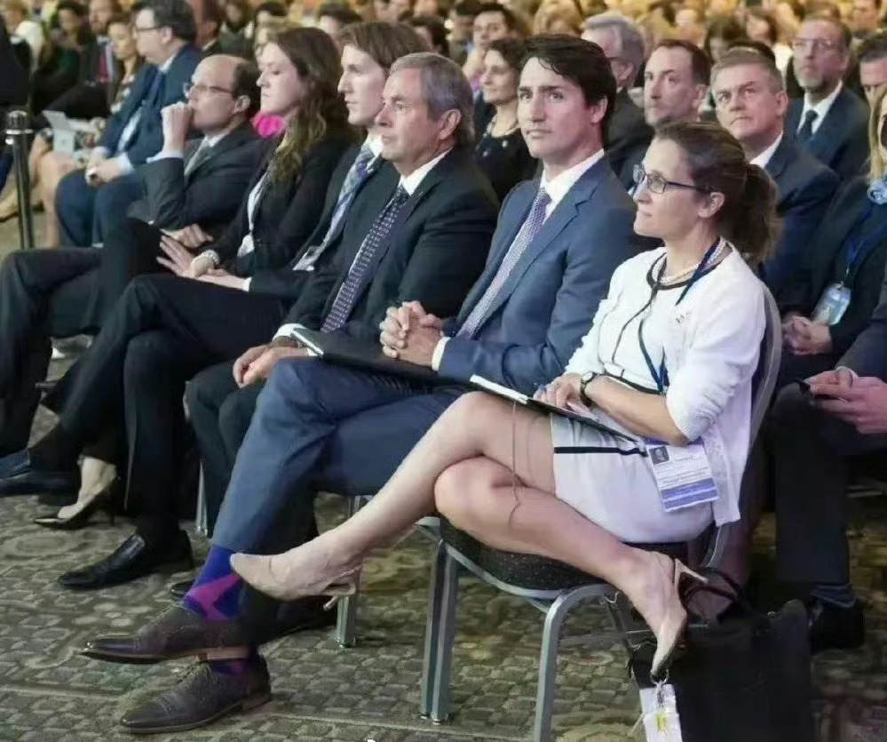 图2:特鲁多与财政部长弗里兰(坐姿豪放的女性)