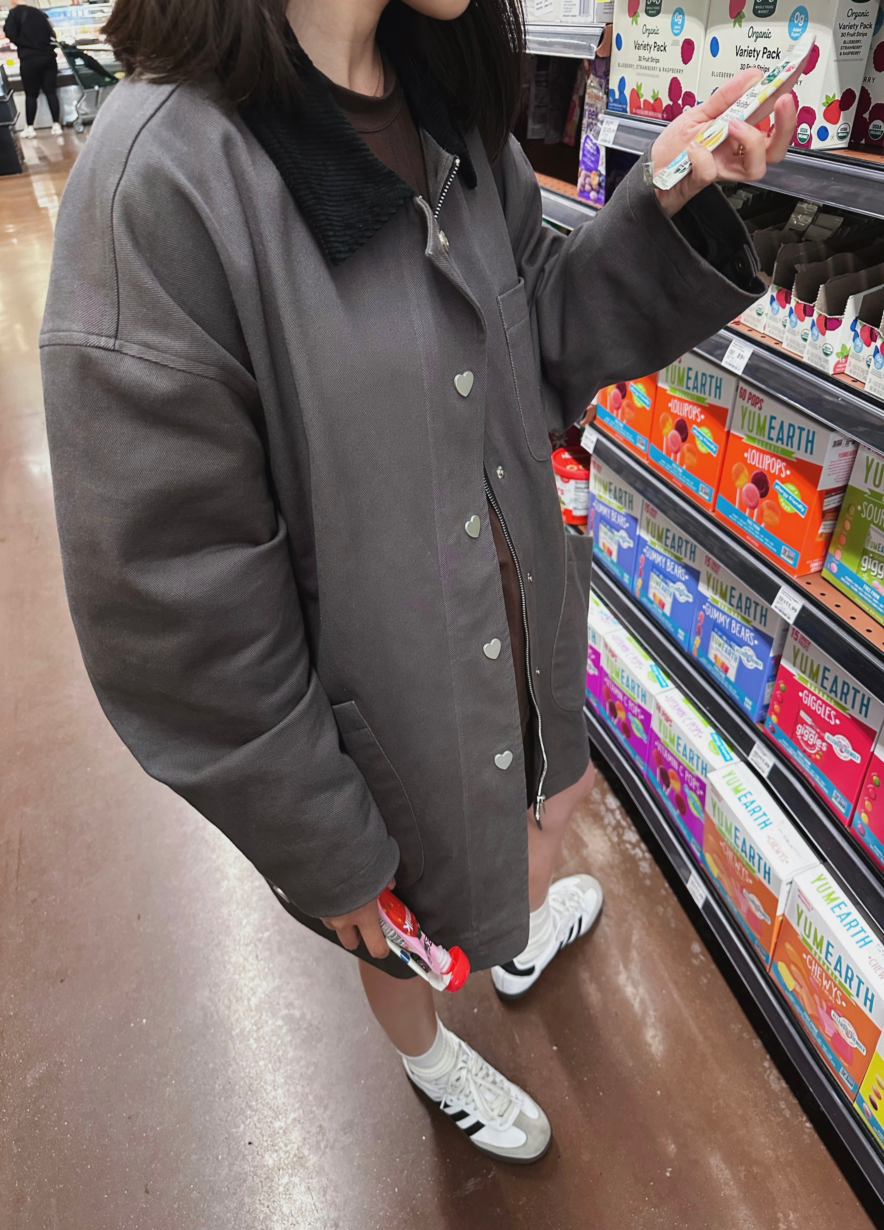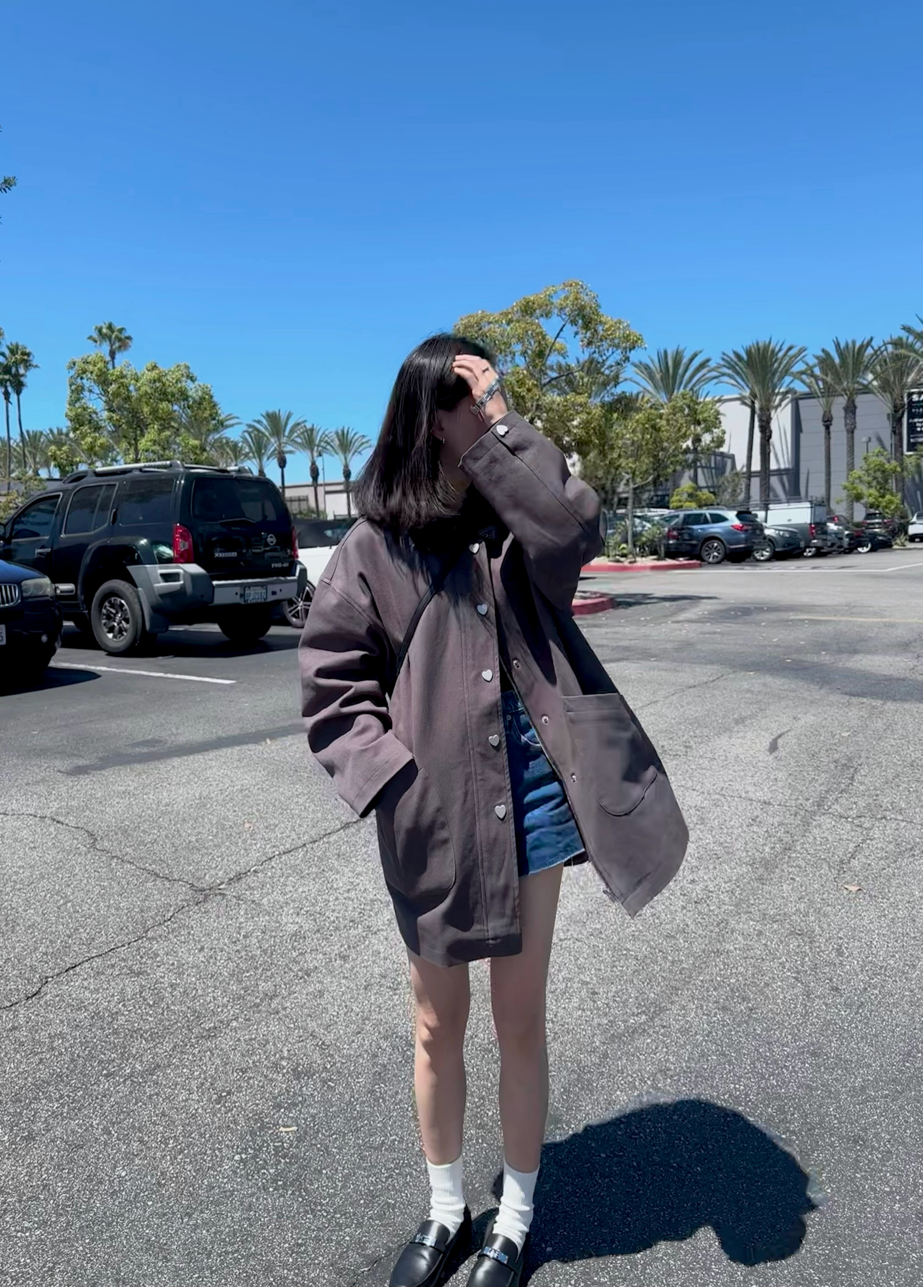 和心形扣杠上了🩶每天都要穿的我的可爱外套🖤🩶🤍