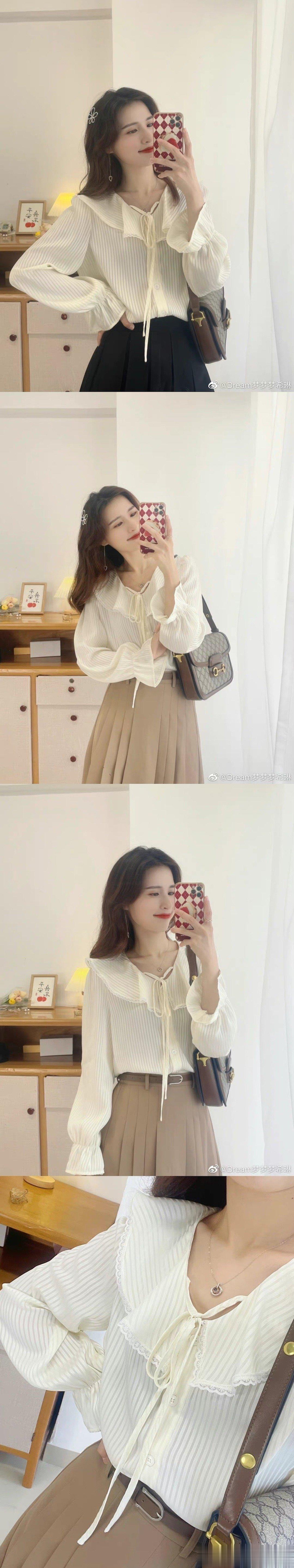 9月24号早10点开拍🈵199➖20呦温温柔柔的米色上衣,荷叶领口,扣子是可以