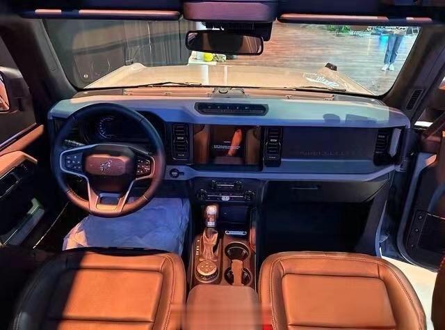 内饰方面的设计比较简洁,迎合了车身外部的粗犷硬派风格,一切均以实用为主;四幅式真皮方向盘,从未启动的车型仪表盘看将采用传统机械式,12英寸中控车机屏幕,搭载SYNC4车载信息娱乐系统;新车还提供G.O.A.T模式地形管理系统,支持Normal普通、Eco经济、Sport运动、Slippery湿滑以及用于越野的Sand沙地、Mud泥地/Ruts车辙、Rock Craw岩石攀爬等多驾驶模式可选。