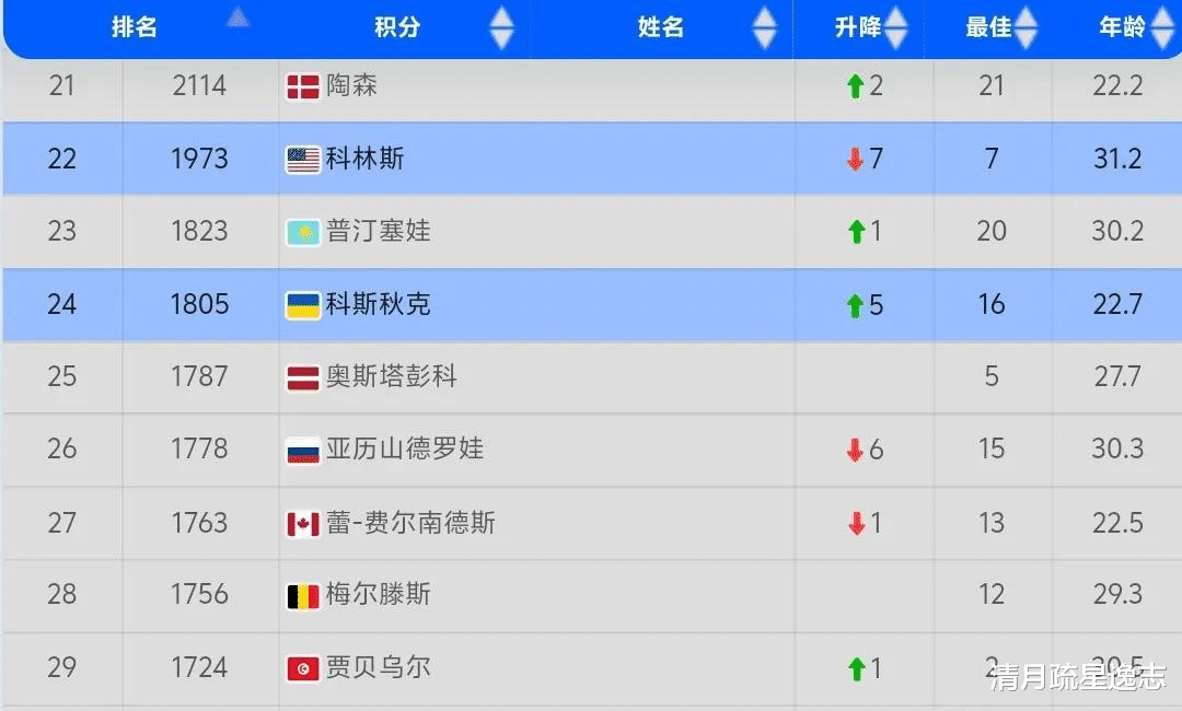 鲍里妮、郑钦文、巴多萨、莱巴金娜等球员也都在本次排名中展现出了不俗的实力,她们的排名也出现了或多或少的变动。其中,值得一提的是,郑钦文,这位奥运冠军,亚洲排名最高的女球员,目前世界排名第八,她的表现无疑是中国网球的骄傲!她的进步有目共睹,未来可期!王欣瑜保持世界第39,也展现出中国女子网球的持续发展势头。