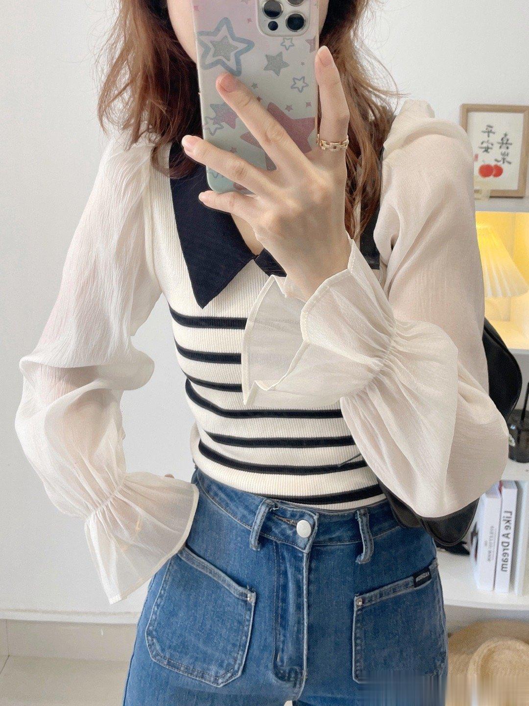 #买家秀# 买家秀假两件软糯针织衫,太温柔了吧。现货哦!