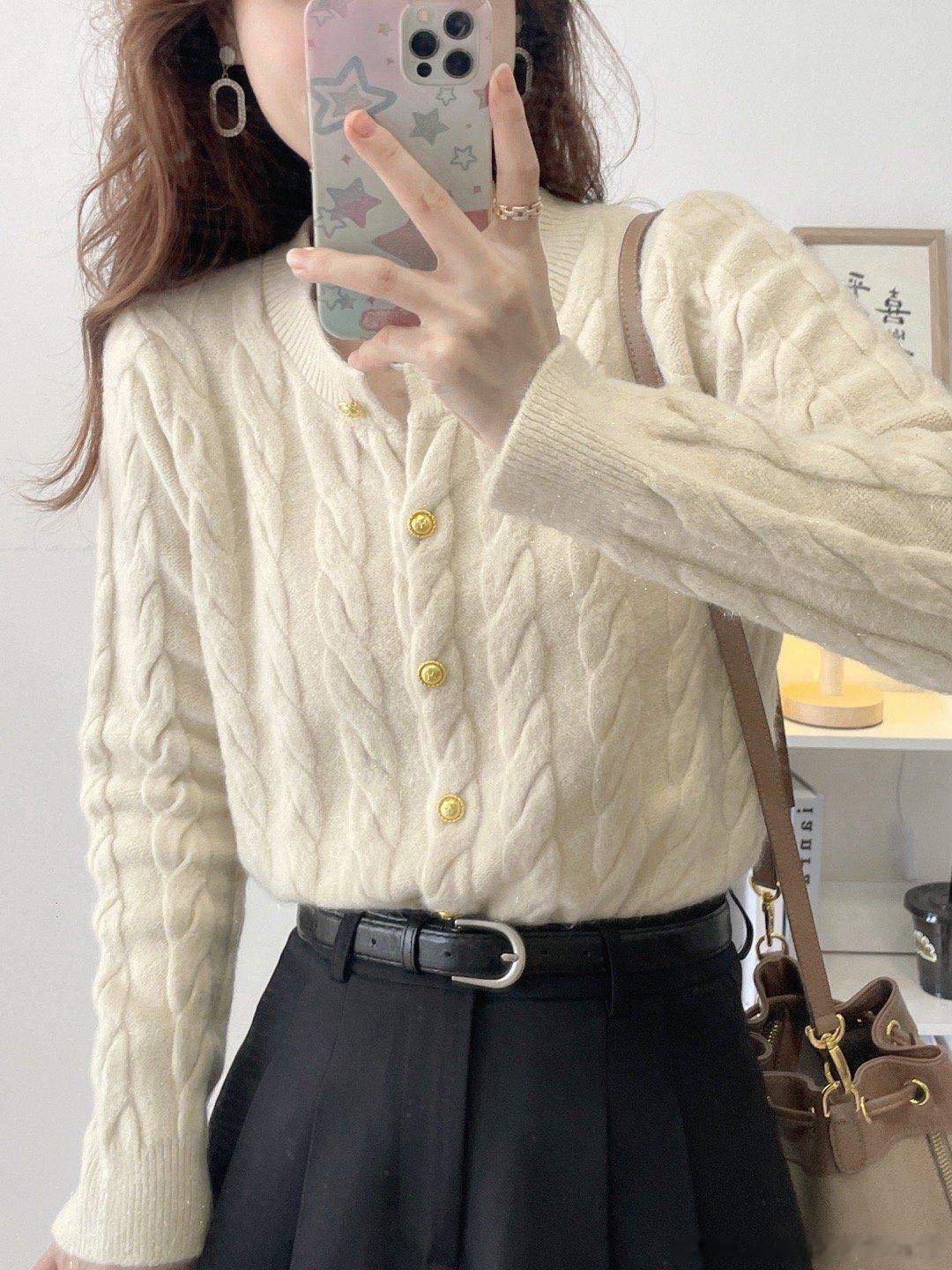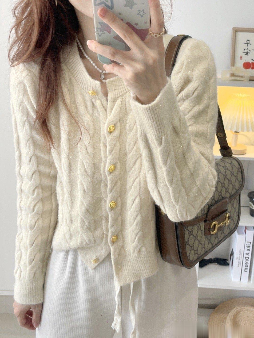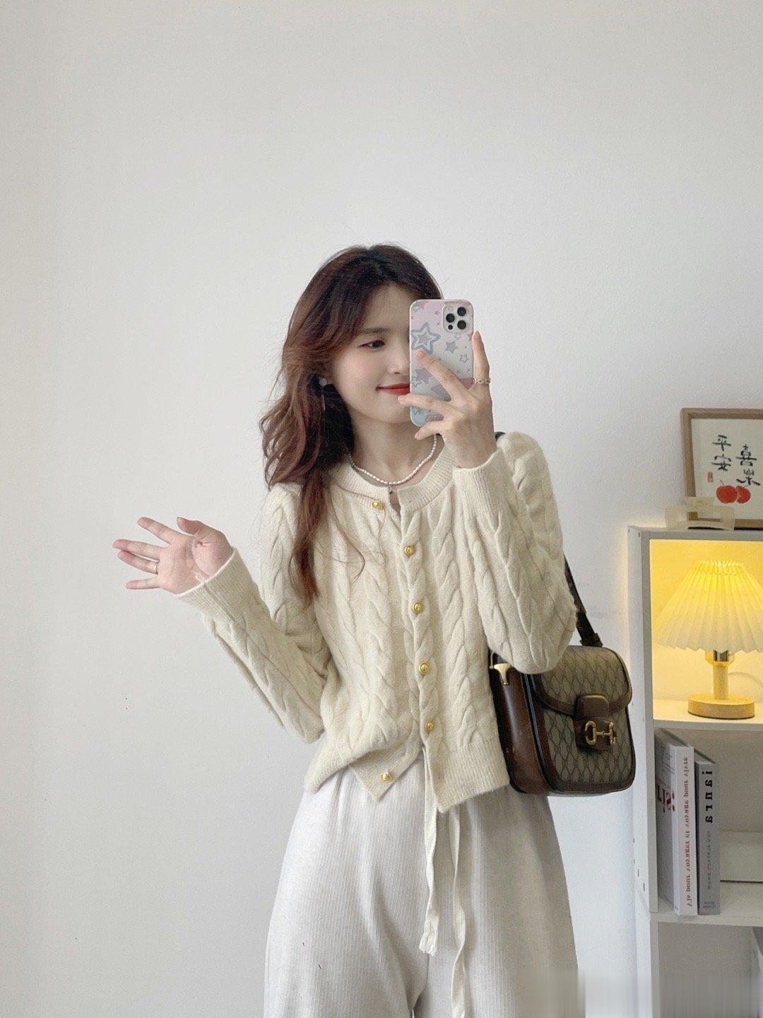 经典款麻花毛衣开衫,面料很厚实的一款哦!秋冬当内搭真的绝绝子。不管是刚开衫或者是扣子扣起来都好看哦!自留款