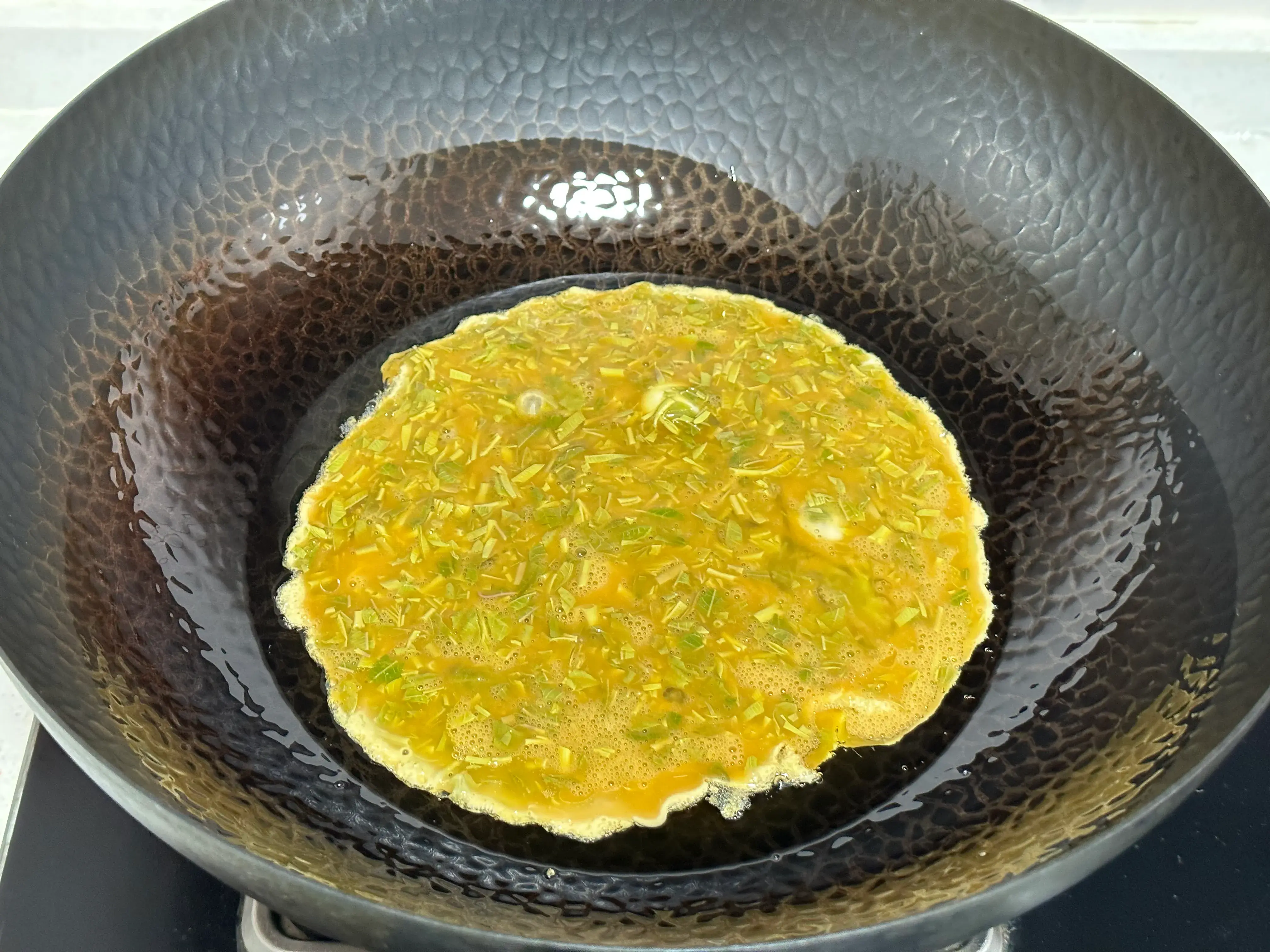 8、开中小火煎,底部定型之后翻炒炒,炒至微微焦黄色就可以出锅了;
