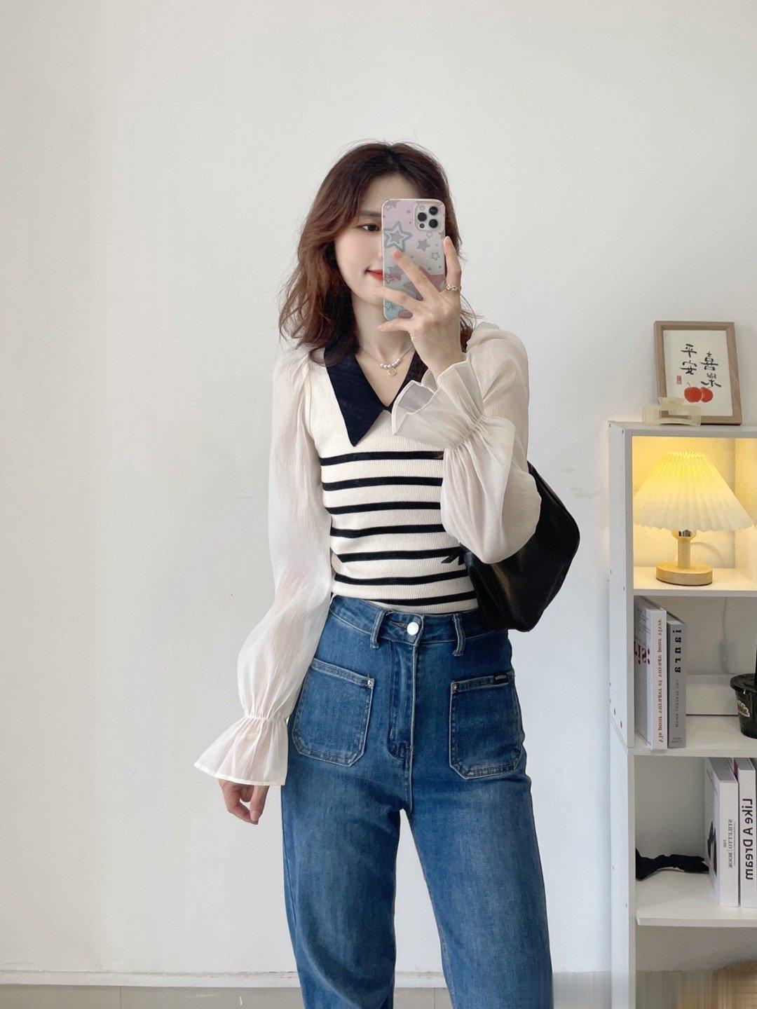 突如其来的冷空气,南方也冷了起来条纹针织衫可以安排上了[心][心]现货哦!